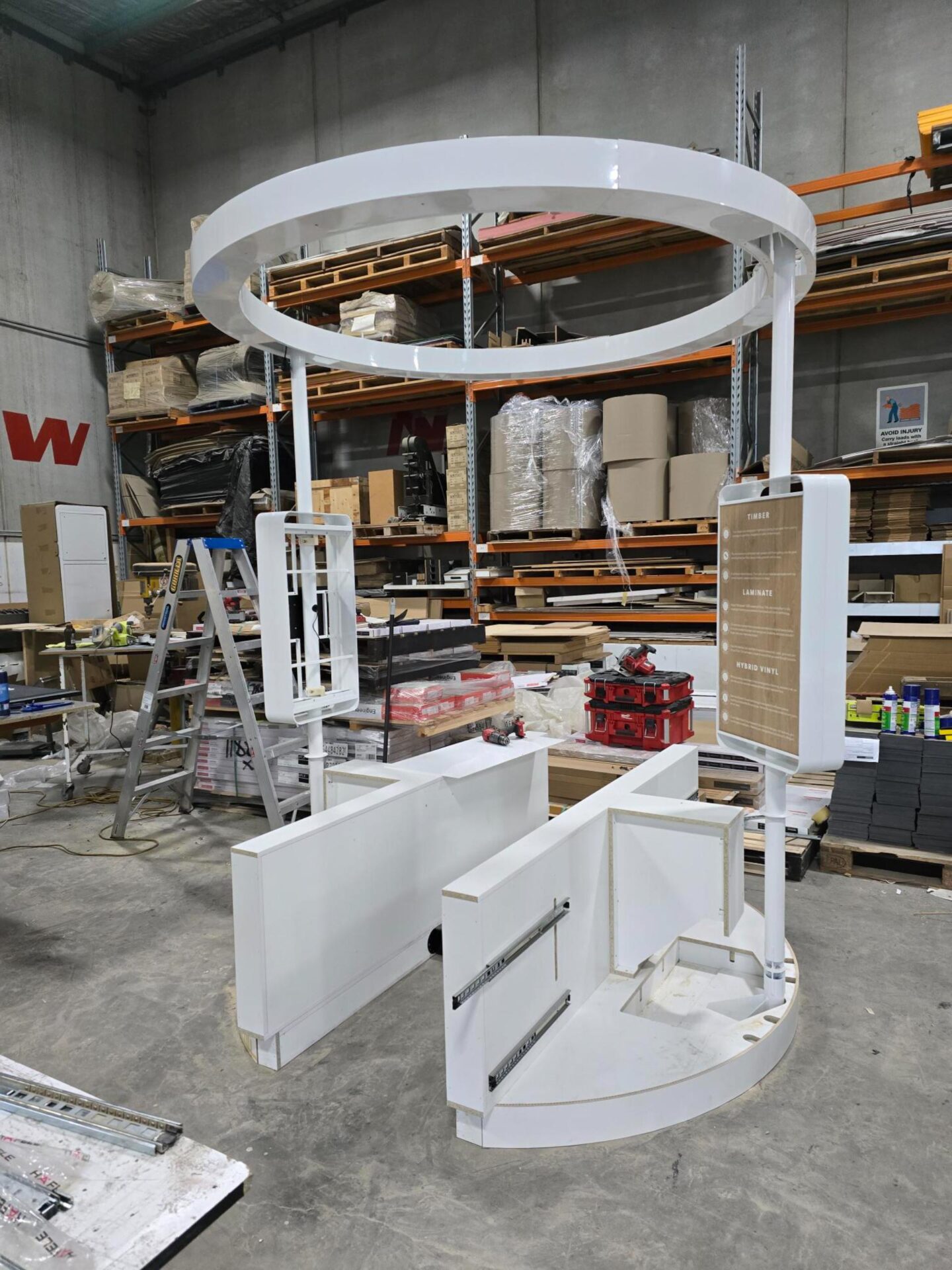 The completed Quick-Step Halo Unit successfully delivered a central, interactive hub that combined digital engagement, physical product interaction, and educational experiences, making it an effective sales and marketing tool within retail environments.
